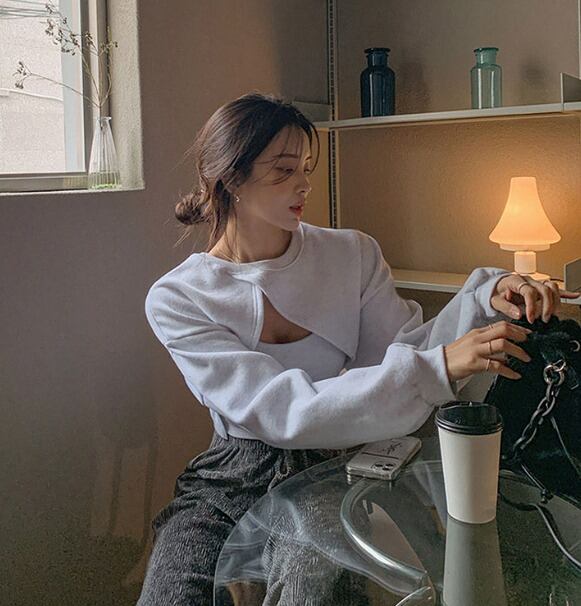 全3色 スウェット トレーナー 2点セット アシンメトリー 切り替え 体型カバー 着痩せ カジュアル