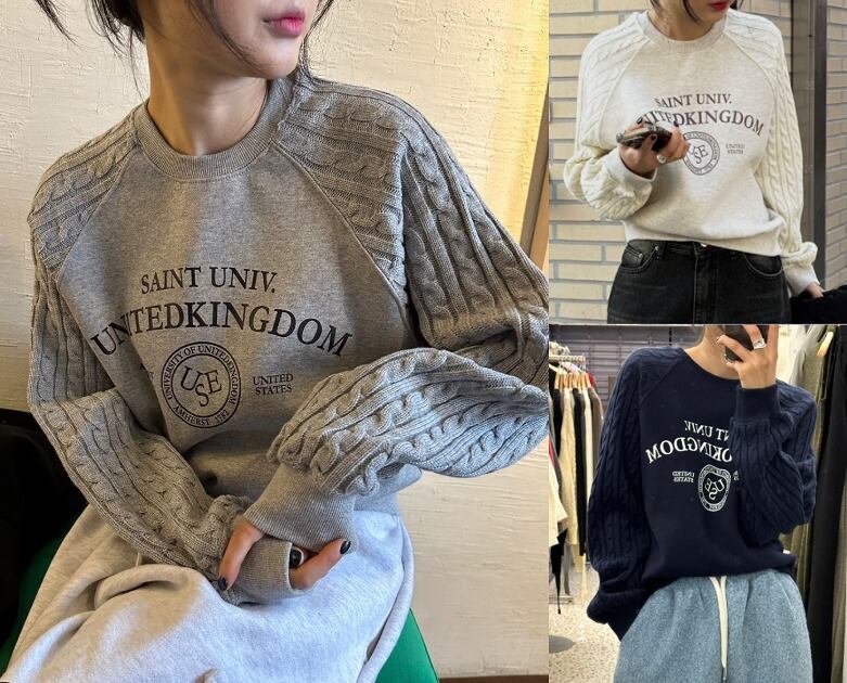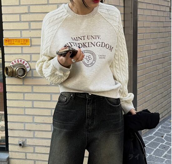 全3色 スウェット トレーナー 長袖 切り替え 体型カバー 着痩せ シンプル