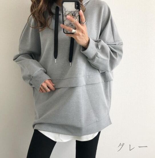 スウェット トレーナー 長袖 切り替え 体型カバー 着痩せ シンプル カジュアル