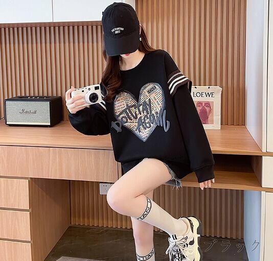 全2色 スウェット トレーナー 長袖 切り替え バイカラー 体型カバー 着痩せ シンプル