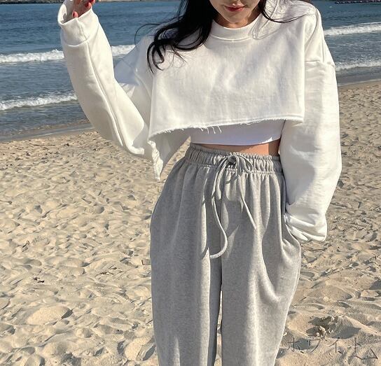 スウェット トレーナー ショット丈 長袖 切り替え 体型カバー 着痩せ シンプル カジュアル