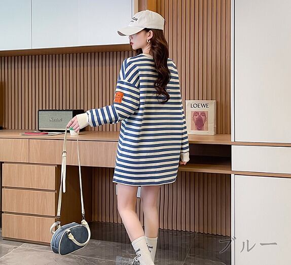 全2色 スウェット トレーナー 長袖 切り替え バイカラー 体型カバー 着痩せ ボーダー柄 【大きいサイズあり