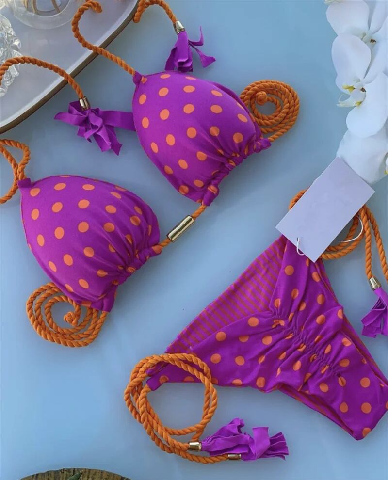(7色) 無地編組水着多色ビキニツーピーススーツ特別な生地ブラジル女性水着水着 ビキニ Tシャツ T240619003504_06