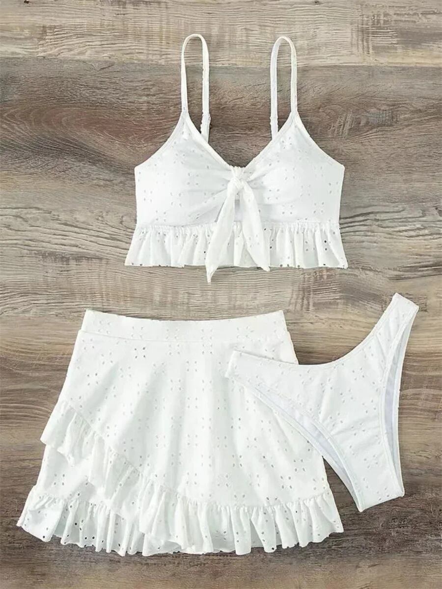 女性のためのセクシーな白い水着,3ピースのビキニセット,ホルターネックライン,フラウンス,プッシュアップ,スカート,水着,ハイウエスト,2024 ビキニ Tシャツ T240619003620_01