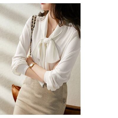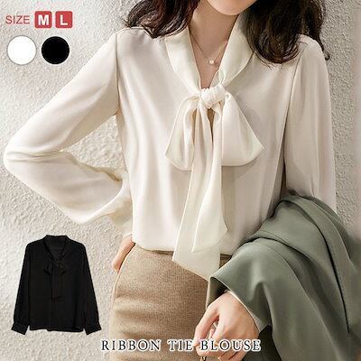 ブラウス レディース シャツブラウス 春 秋 白 黒 ボウタイシャツ ブラウス シャツ トップス 無地 長袖 冬 秋冬 リボンタイ ホワイト ブラック オフィス カジュアル