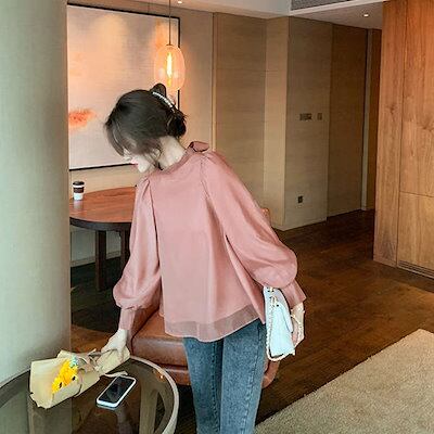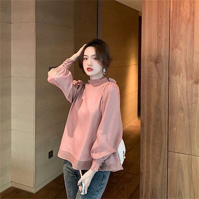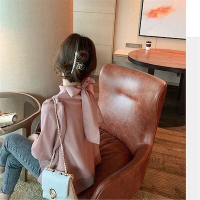 ブラウス レディース ボウタイ シャツ バックリボンデザイン 長袖 オフィス 可愛い 春 トップス プルオーバー きれいめ 大人 お洒落 カジュアル シンプル 前開き 体型カバー オールシーズン ゆっ