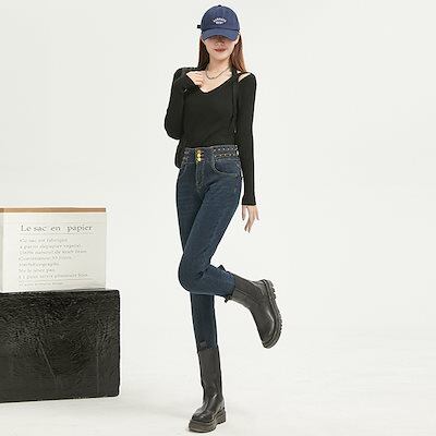 秋の新作 ストレッチスリムスリムスリム 脚見せジーンズレディースブルーグレー百合タイツ 脚長効果!スキニーデニムパンツ ダメージ ロングパンツ レディース ワイドパンツ