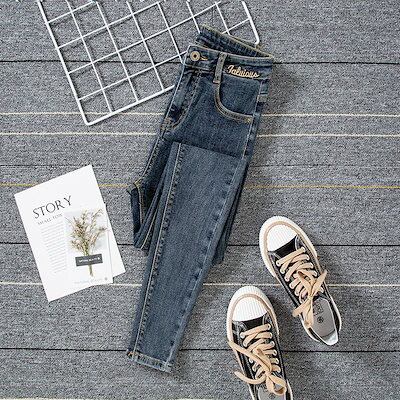 【3日以内出荷】脚長効果!スキニーデニムパンツブルーグレージーンズクロップドパンツ2023春秋新作刺繍ハイウエストスリムパンツレディース 韓国ファッション