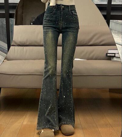 9COLOR NNZK92 デニムパンツ レディース スパンコールジーンズ2025春秋新作韓国ファッション