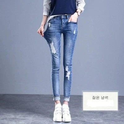 レディースパンツ美脚デニムパンツスキニーズボン極伸び美尻美脚スキニーデニムパンツナインポイントペンシルハイウエストスキニージーンズサロペット春秋新作韓国版は薄手のストレッチスリムパンツ