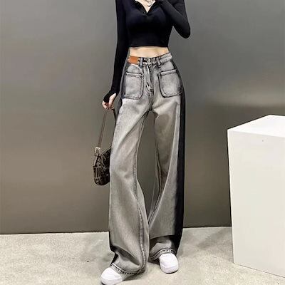 ワイドパンツ ブラックストレートワイドレッグドラッグジーンズレディース2025春新作スキニー
