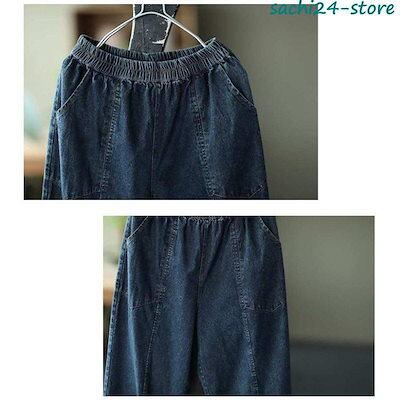 新作 サルエルパンツ レディース デニムパンツ サーカスパンツ ウエストゴム ボトムス ガウチョ ワイドパンツ 体型カバー ゆったり カジュアル