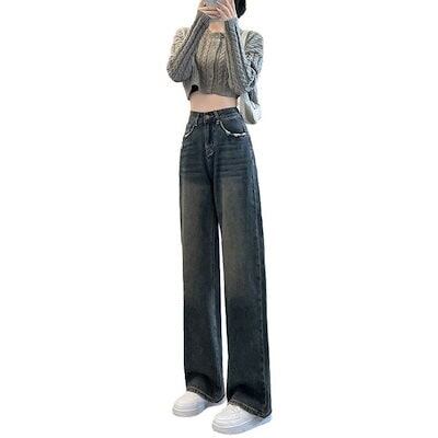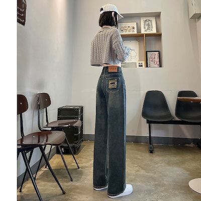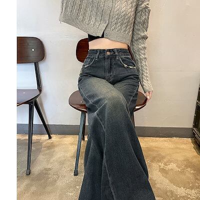 デニム ジーンズ レディース 春 秋 新作 ハイウエスト 秋 ゆったり 幅広 脚 ストレートパンツ