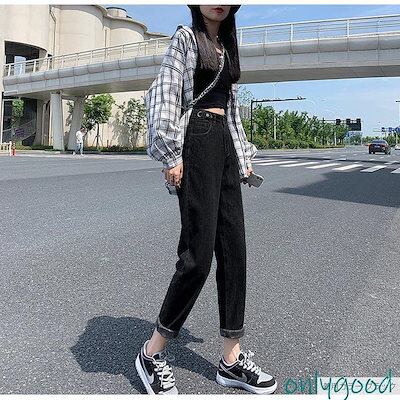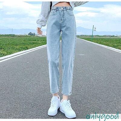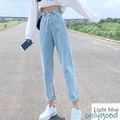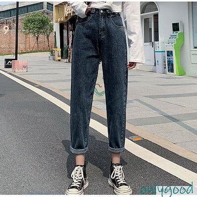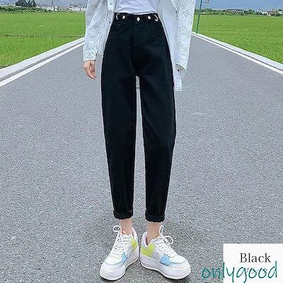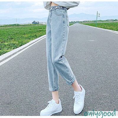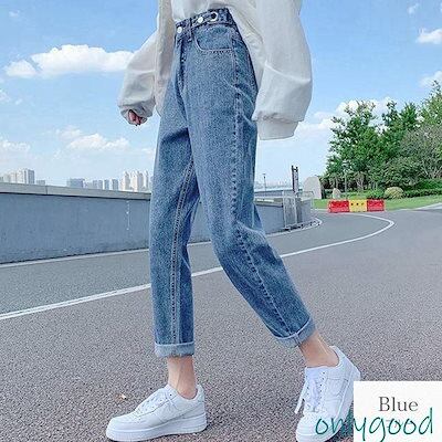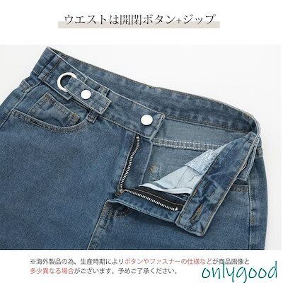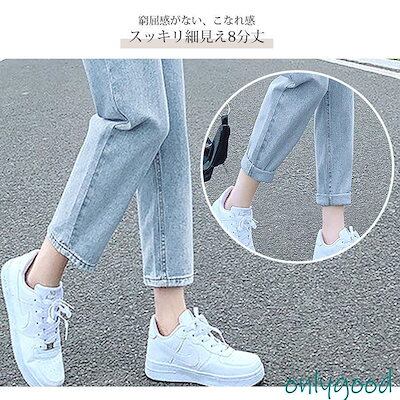 デニムパンツ 8分丈 ボトムス ストレート ポケット アジャスター 脚長 レディース 新作 春 夏 秋 ブラック グレー ライトブルー ブルー S M L XL 9138