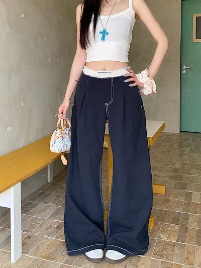 2025春夏 スタイルアップ効果up モップパンツ脚長ズボン美脚 ハイウエストレディース 韓国 レッグカジュアル スリムボトムス ファッション色っぽ女っぽカジュアルきれいめ大人っぽ上品お姉さんゆったり