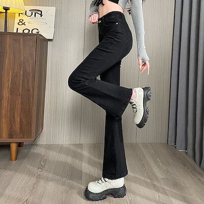 3日以内出荷脚長効果スキニーデニムパンツ 小柄通勤ハイウエスト継ぎ目スリムマイクロフレアジーンズ レディース 韓国