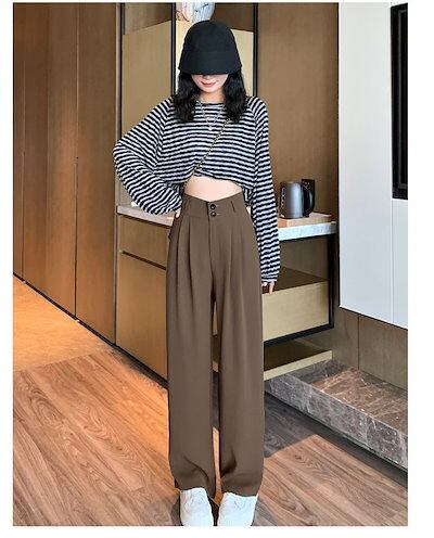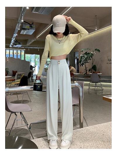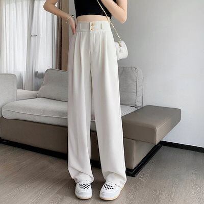 ワイドパンツ ワイドパンツ レディース 24新作ハイウエストドレープワイドパンツ スリムストレートホワイトスーツパンツ