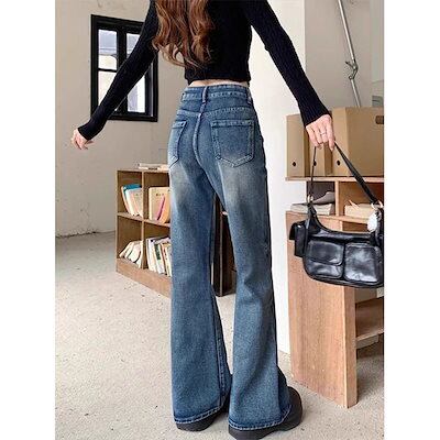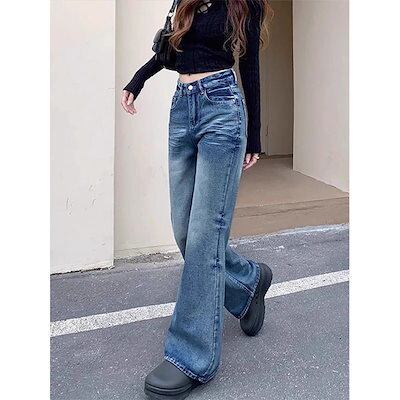デニム ヴィンテージ ルーズ ワイドレッグ 2025年新作 スリム ドレープ ドラッグパンツ 春秋 婦人服 百掛け 韓国ファッション