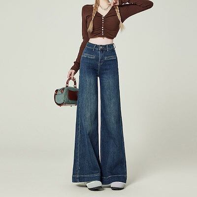 デニムパンツ レディース ワイドパンツレディース春秋2025年新作ハイウエストゆったりスリムパンツジーンズ ボトムス 美脚 ワイドパンツ