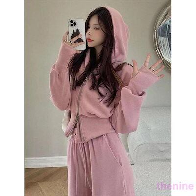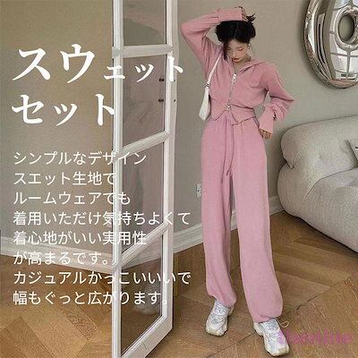 超人気 ジャージ 上下セット レディース スウェット セットアップ フード付き ロングパンツスリムスポーツルームウェアスエット部屋着