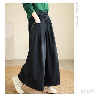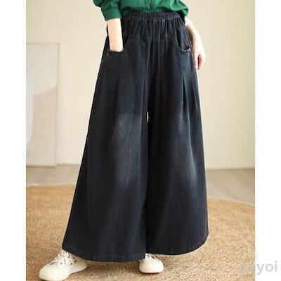 デニム ワイドパンツ レディース ガウチョパンツ デニムパンツ ゆったり ボトムス ジーパン ジーンズ バギー イージーパンツ