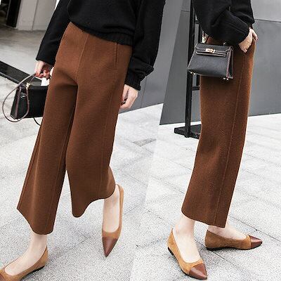パンツ ワイドパンツ スカーチョ バギーパンツ ガウチョパンツ 九分丈 暖かい 体型カバー 秋 冬 レディース ボトムス ワイド ゆったり カジュアル 大きいサイズ 美脚 細見え ウール 防寒 秋冬