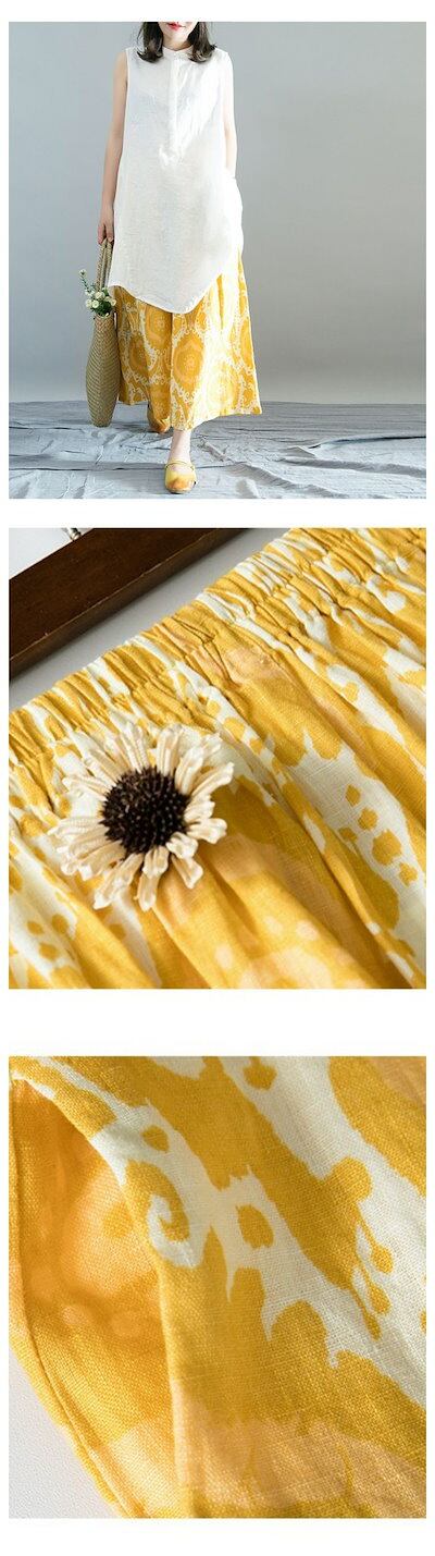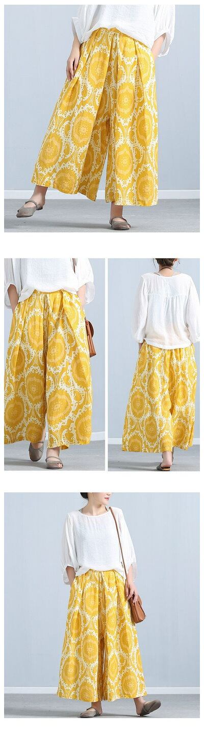 ワイドパンツ リネン コットン 夏 レディース パンツ ガウチョパンツ ズボン 九分丈 ボトムス イージーパンツ バギーパンツ 大きいサイズ ゆったり 体型カバー カジュアル 美脚 森ガール