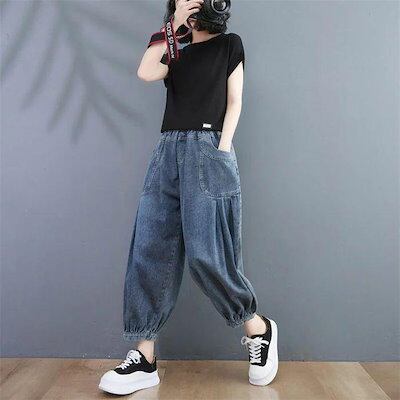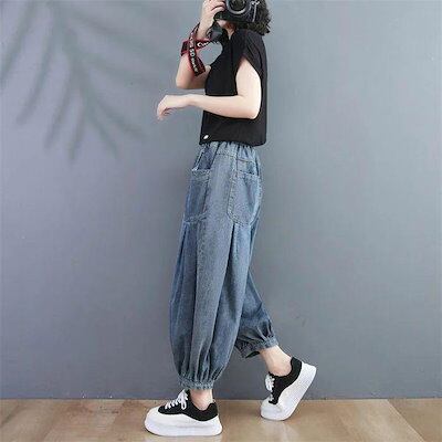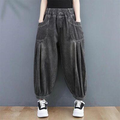 レディースパンツデニムバルーンパンツレディースパンツデニムサーカスパンツ大きいサイズあったかバギーパンツデニムパンツバルーンウエ