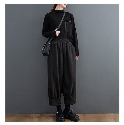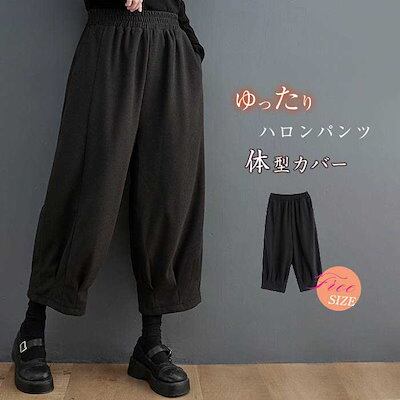パンツ レディース 春 ゆったり ワイドパンツ バルーンパンツ ウエストゴム レディース 秋 冬 バギー パンツ オーバーサイズ 9分丈 ハロンパンツ ボトムス 体型カバー 無地 着痩せ 美脚 ファッ