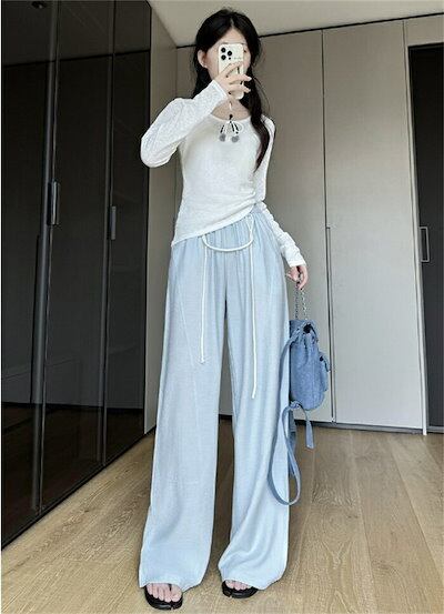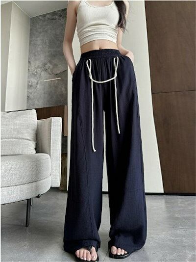ワイドパンツ ガウチョパンツ パンツ レディース 夏 バギーパンツ 涼感 ウエストゴム ハイウェストフレアパンツ ウエストリボン ロングパンツ ゆったり 美脚 薄手 ゴム ロング丈パンツ ひんやり 細