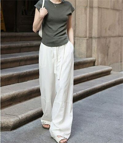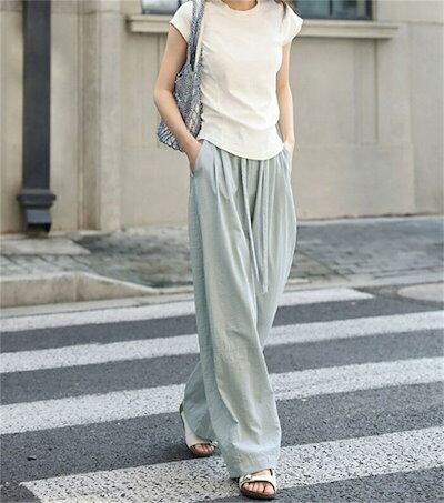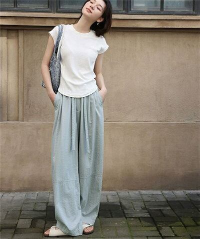 ワイドパンツ ガウチョパンツ パンツ レディース 夏 バギーパンツ 涼感 ウエストゴム ハイウェスト ストレートパンツ ウエストリボン 春 ロングパンツ 美脚 薄手 ゴム ロング丈パンツ ひんやり 細