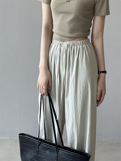 ワイドパンツ ガウチョパンツ パンツ レディース 夏 バギーパンツ 涼感 ウエストゴム ゆったり フレアパンツ ウエストリボン 夏 ロングパンツ 美脚 薄手 ゴム ロング丈パンツ ひんやり 細見え 着
