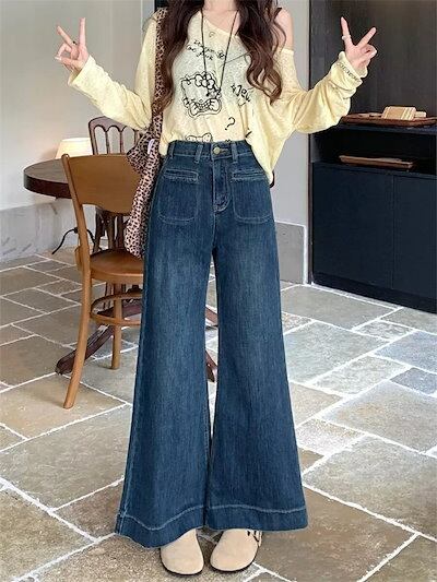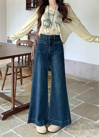 ワイドパンツ デニム パンツ レディース ガウチョパンツ パンツ ジーンズ ジーパン ロング パンツ ゆったり バギーパンツ ボトムス ワイド デニム パンツ 春秋 秋冬 カジュアル ズボン ロング丈