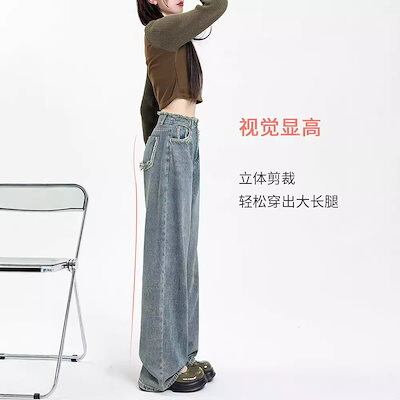 【3日以内出荷】スラックスパンツ レトロ ワイドパンツ ジーンズ レディース 春と秋 2024年新作 ハイウエスト ストレート ルーズ ドレープ デザイン 韓国