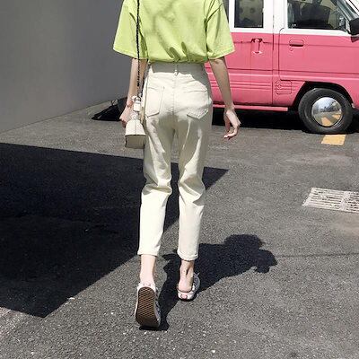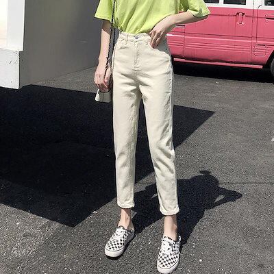 【3日以内出荷】スラックスパンツ カレッジスタイル ベージュ 9分丈パンツ ジーンズ レディース 2024年夏秋新作 ゆったり ストレートパンツ ハーレムパンツ 薄い部分 韓国