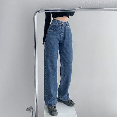 デニムパンツレディース イレギュラー クロス 新作 レトロ ハイウエスト 夏 ゆったり ストレート 細め ドレープ ワイドパンツ