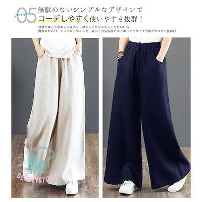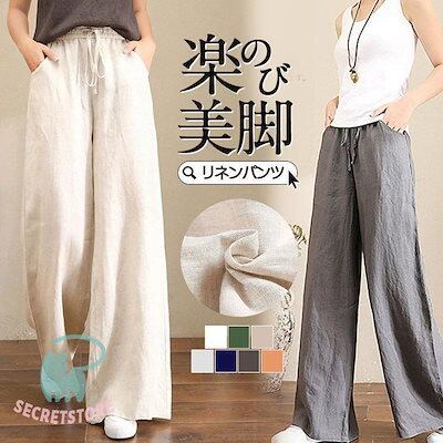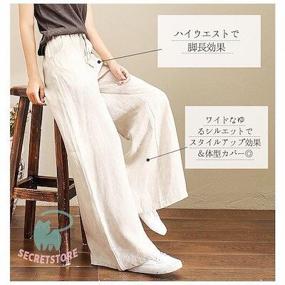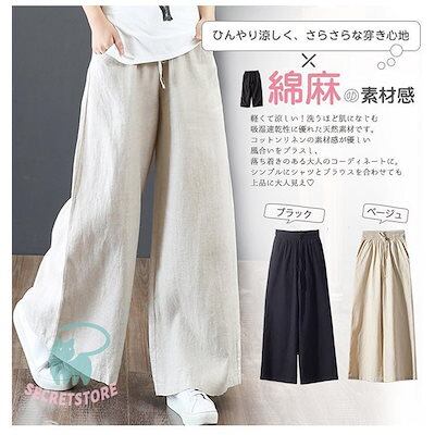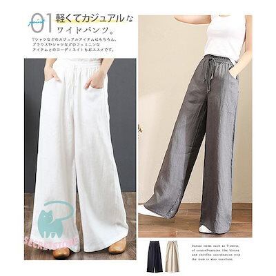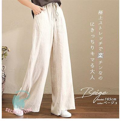 新品(タイムセール)ワイドパンツ レディース パンツ ウエストゴム チノパン ズボン ロング ボ ゆったり イージーパンツ ガウチョ カジュアル 春夏 体型カバー