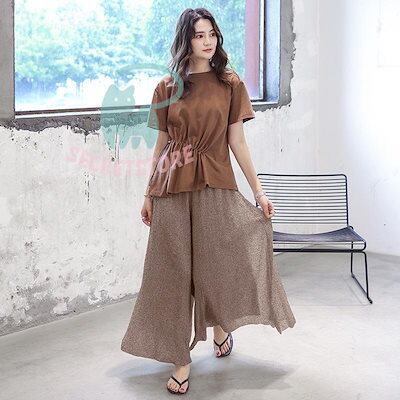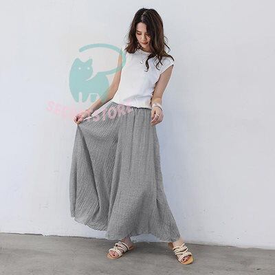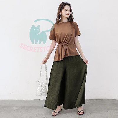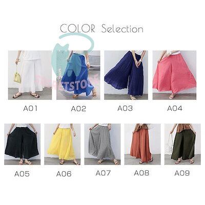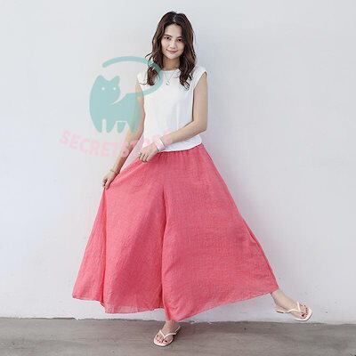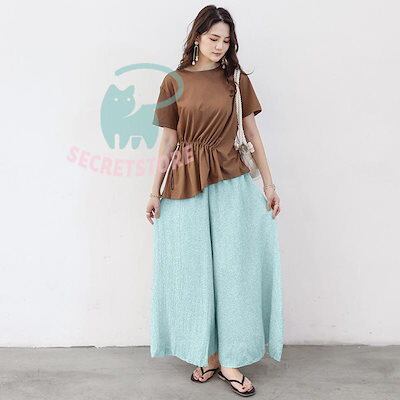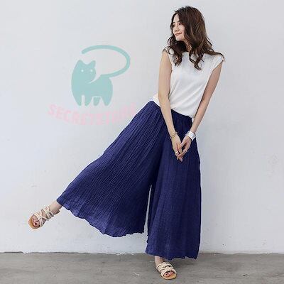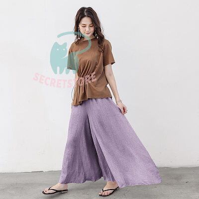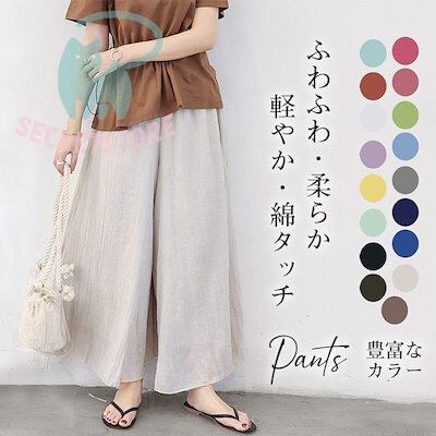 新品(タイムセール)ワイドパンツ ガウチョパンツ レディース 綿 ボパンツ ガウチョ ゆったり 体型カバー ズボン ウエストゴム 夏 無地
