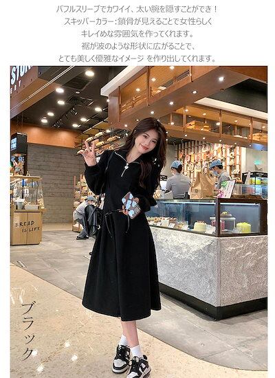 裏起毛 ワンピース フレアワンピース 秋冬 レディース ロング丈 長そで 冬 フレア タック ロングワンピース ロング 裏起毛ワンピース フロントとバックにタックがあって ジッパー スキッパーカラー