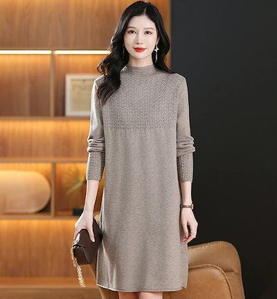 ニットワンピース 秋冬 ワンピース レディース ニットワンピ 長袖 ひざ丈 ミモレ丈 リブニット 大きいサイズ ゆったり 体型カバー カジュアル ニット 秋 無地 シンプル オシャレ エレガント きれ