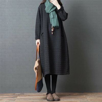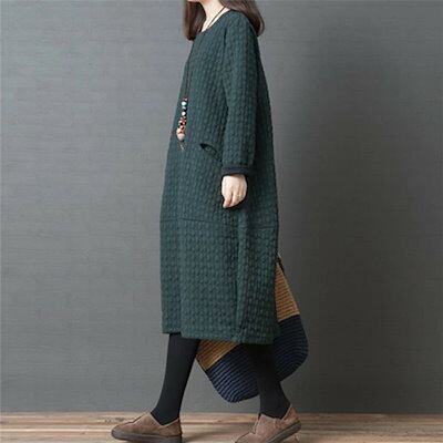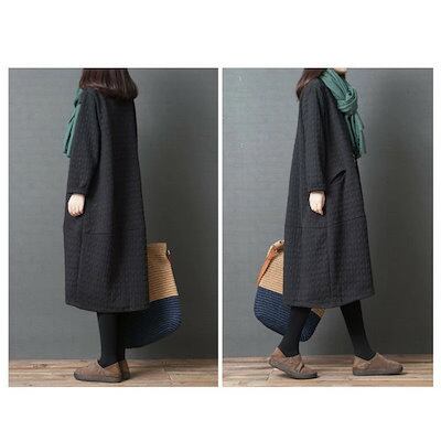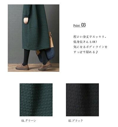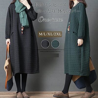 ワンピース レディース 秋冬 ワンピ チュニック 長袖 Uネック フレアワンピース 中綿 エンボス加工 暖かい ルームウェア 大きいサイズ ゆったり 体型カバー 防寒 部屋着 黒 グリーン