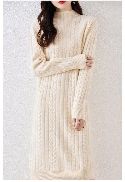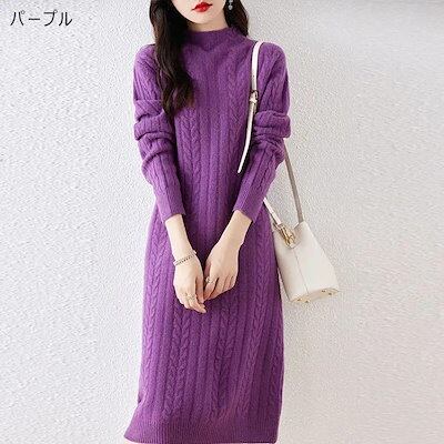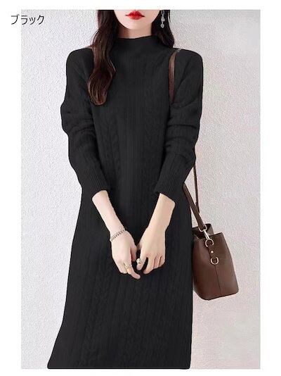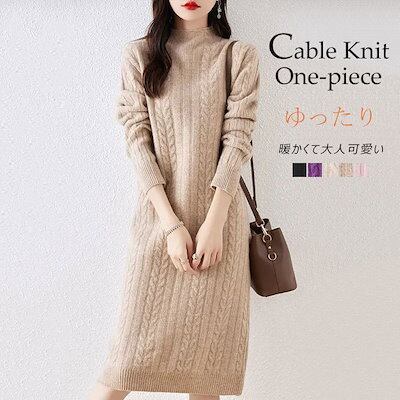 ケーブル ニット ワンピース レディース ニットワンピース 秋 冬 秋冬 ワンピース プチハイネック ロングワンピース 長そで Iラインワンピース Iライン 無地 カジュアル ケーブル編み お呼ばれ