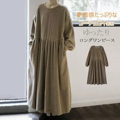 ワンピース 秋冬 キレイめ コーデュロイワンピース レディース ロングワンピース 大きいサイズ 長袖 ロング丈 ロングワンピ ミモレ丈 厚手 ワンピース ゆったり 着?せ 体型カバー カジュアル 森ガ