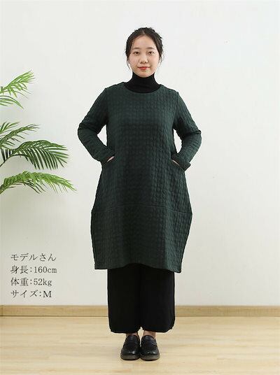 ワンピース レディース 秋冬 ワンピ チュニック 長袖 Uネック フレアワンピース 中綿 ロングワンピース エンボス加工 暖かい ルームウェア 大きいサイズ ゆったり 体型カバー 防寒 部屋着 ポケッ