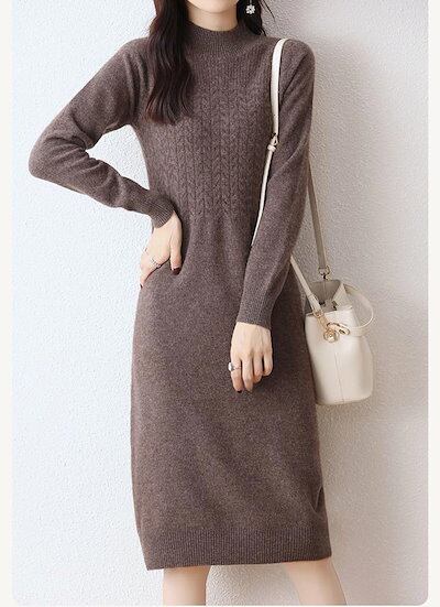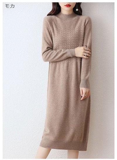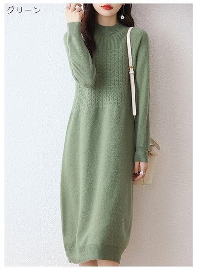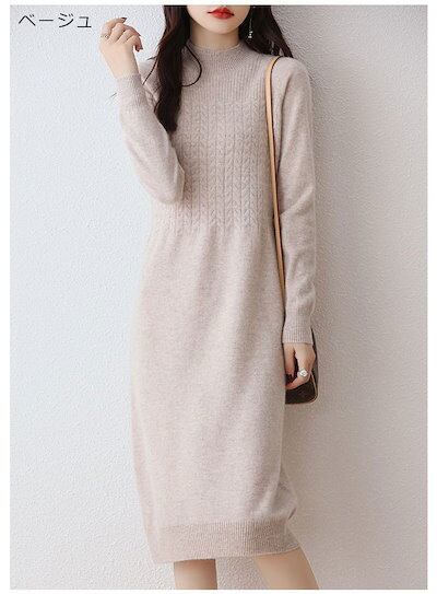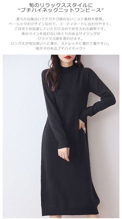 ハイネック ワンピース ニット ロング レディース 秋冬 ニットワンピース 長袖 ゆったり ニットワンピ 長そで ロングワンピース プチハイネック Iライン 厚手 無地 体型カバー ベーシック 黒 カ