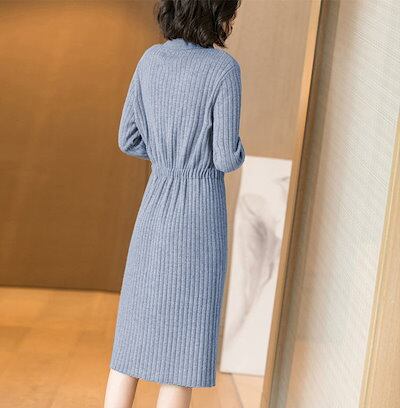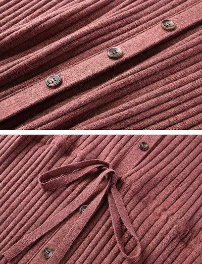 ニットワンピース レディース ニット 秋冬 ロングワンピース 長袖 襟付き リボン ワンピース 膝丈 無地 ボタン リブ ゆったり 体型カバー ロングニット フォーマル おしゃれ 通勤 リブニット 大