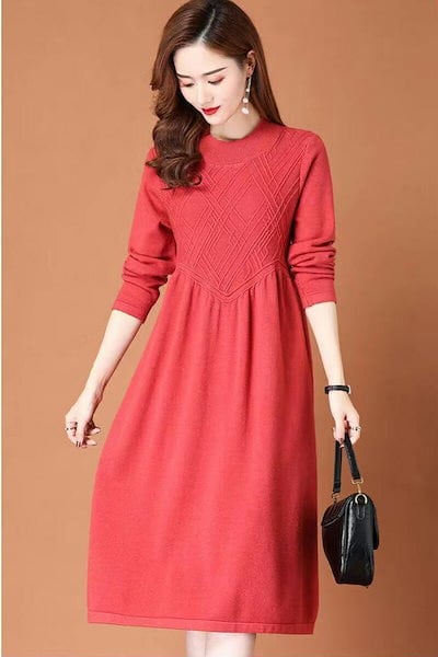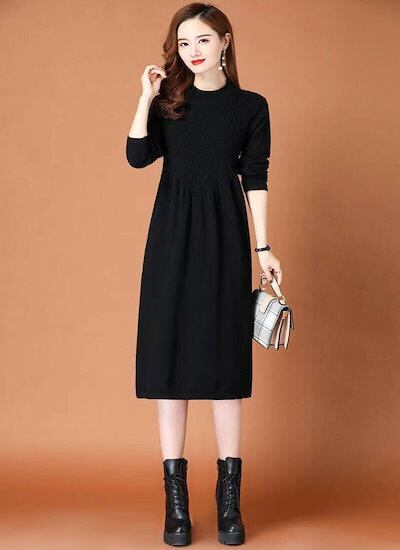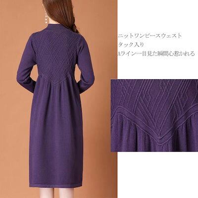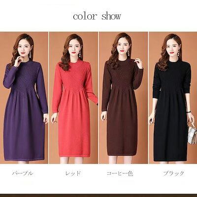 ワンピース ニットワンピース レディース 秋冬 冬 ハイネック プチハイネック ロング丈 ロングワンピース 長そで ゆったり 体型カバー 柔らか ニットセーター 無地 シンプル 着回し カジュアル マ