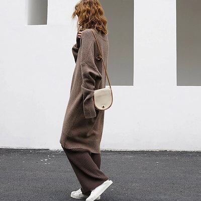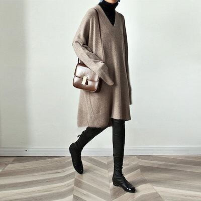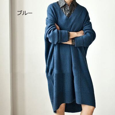 ニットワンピース レディース ワンピース 秋冬 ロングワンピース 長袖 ニットセーター Vネック チュニック ロング ニット ロングワンピ 暖かい ストレート 大きいサイズ 体型カバー シンプル カジ