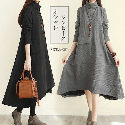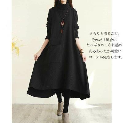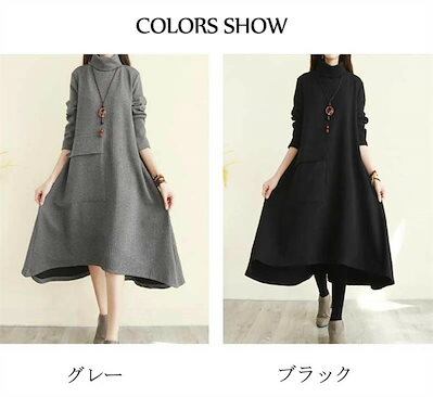 ワンピース レディース 秋冬 ロングワンピース 長袖 チュニック ロングワンピ ミモレ丈 タートルネック 無地 大きいサイズ 体型カバー ハイネック フレア おしゃれ 通勤 きれめ