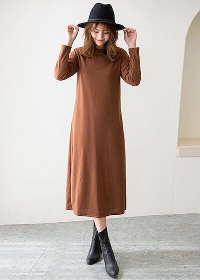 ワンピース レディース ロングワンピース ロング丈 マキシ丈 長袖 秋冬 ふんわり ゆったり 丸首 カジュアル ロングワンピース オーバーサイズ オシャレ 無地 シンプル 30代 40代 50代 送料